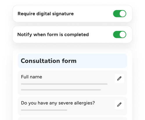 Manage your consultation forms and patch tests without extra paperwork.